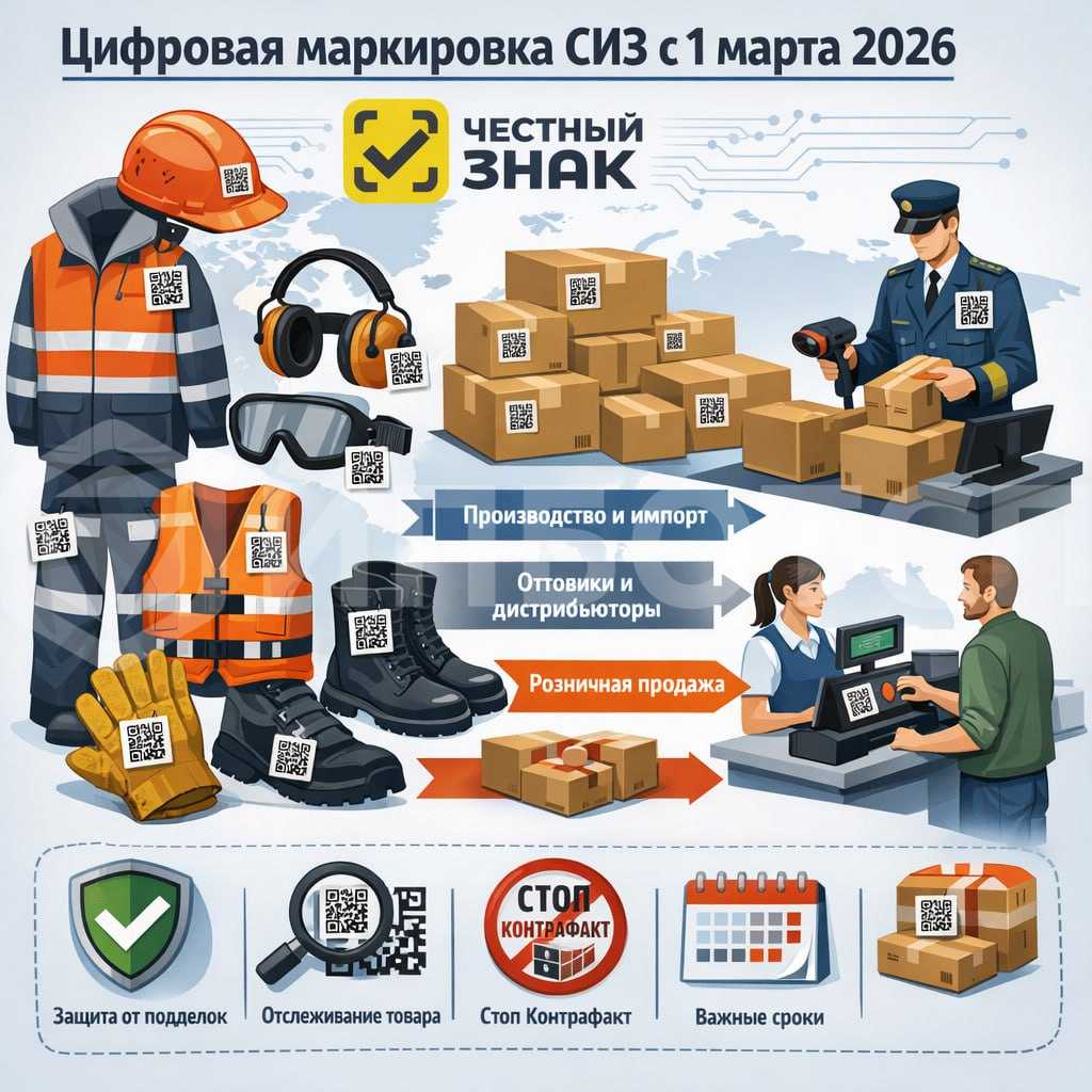С 1 марта 2026 года в России введена обязательная цифровая маркировка некоторых видов спецодежды и средств индивидуальной защиты (СИЗ) в рамках государственной системы контроля товаров «Честный знак». Это направлено на